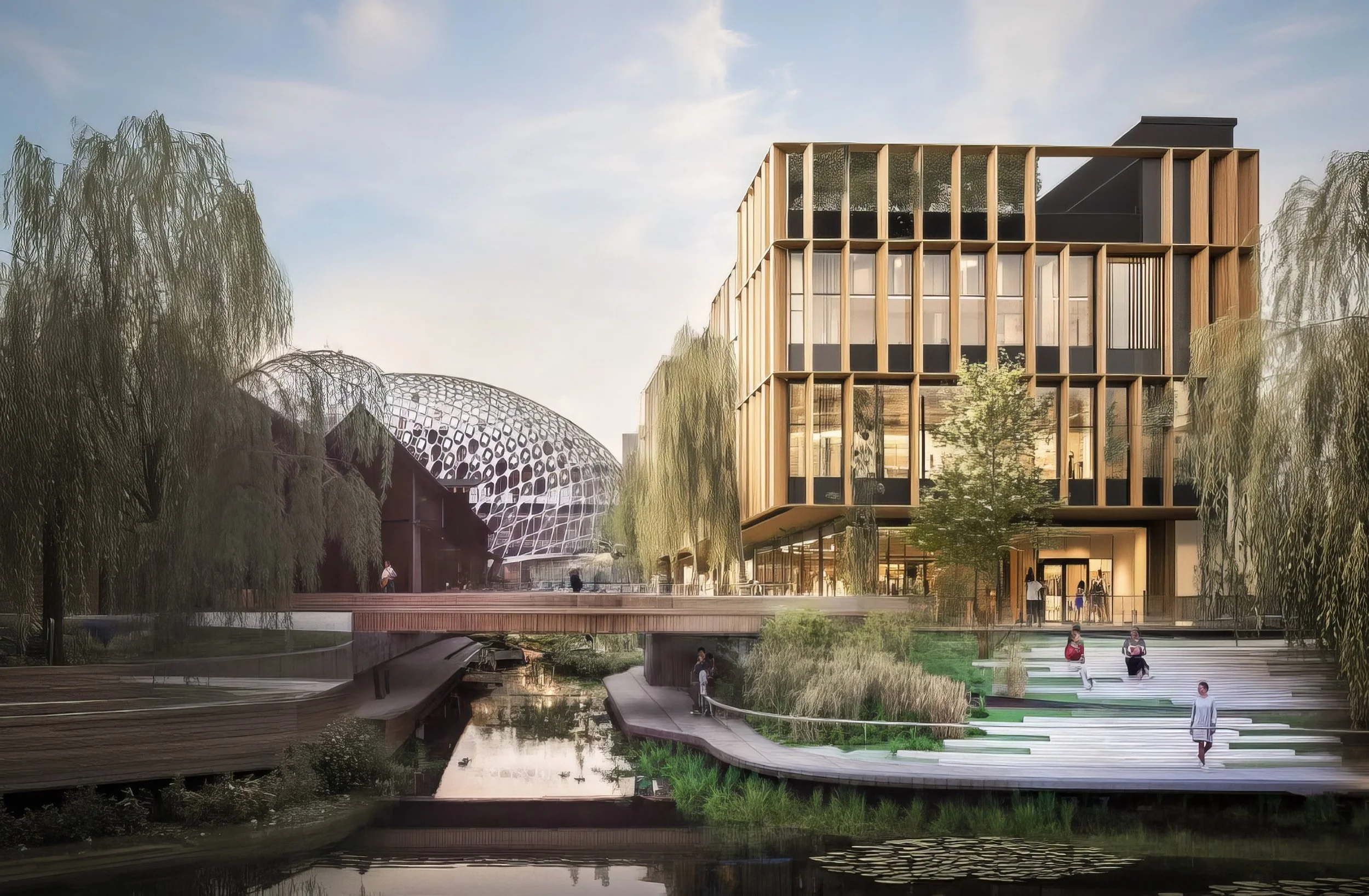 This “Work in Progress” is a transformative eco-neighborhood in Wuxi that seamlessly integrates modern architecture with nature. Through innovative design and sustainable practices, it fosters a vibrant, human-scaled community. From covered shopping arcades and green embankments to biophilic facades and activated rooftops, every element enhances biodiversity and well-being, creating a dynamic, evolving urban oasis that respects Wuxi’s heritage while embracing future prosperity.